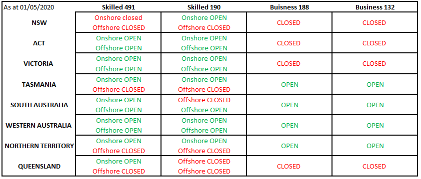 If you are considering applying for one of the above visas please ensure you check the relevant State or Territory Government website for up-to-date information.